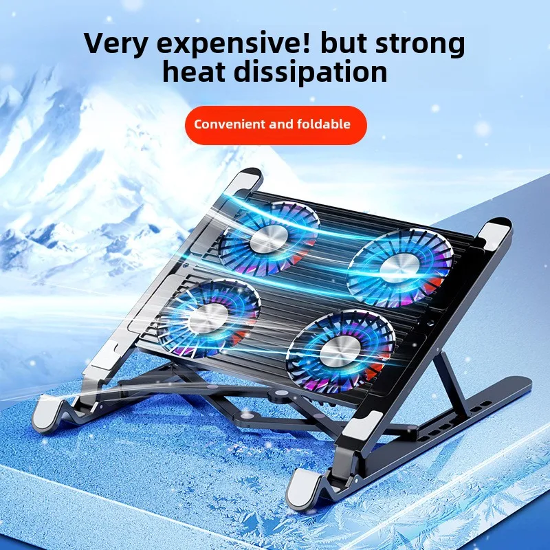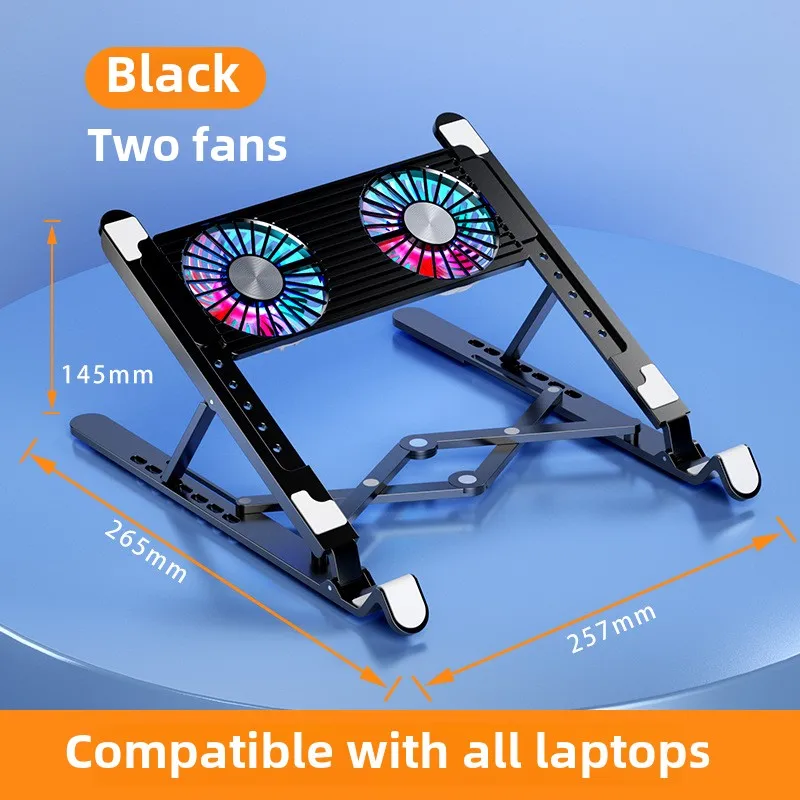 360 Rotation Portable Alloy Aluminum Foldable Ergonomic Adjustable Desk Computer Standing Holder Laptop Stand with Cooling Fan