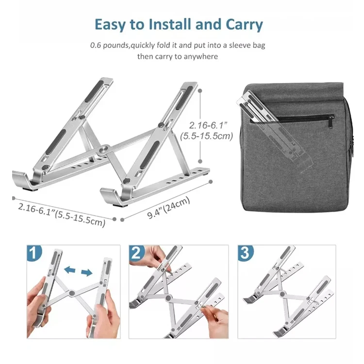 Aluminum Alloy Laptop Stand 6 Level Adjustable and Foldable for Laptop Notebook