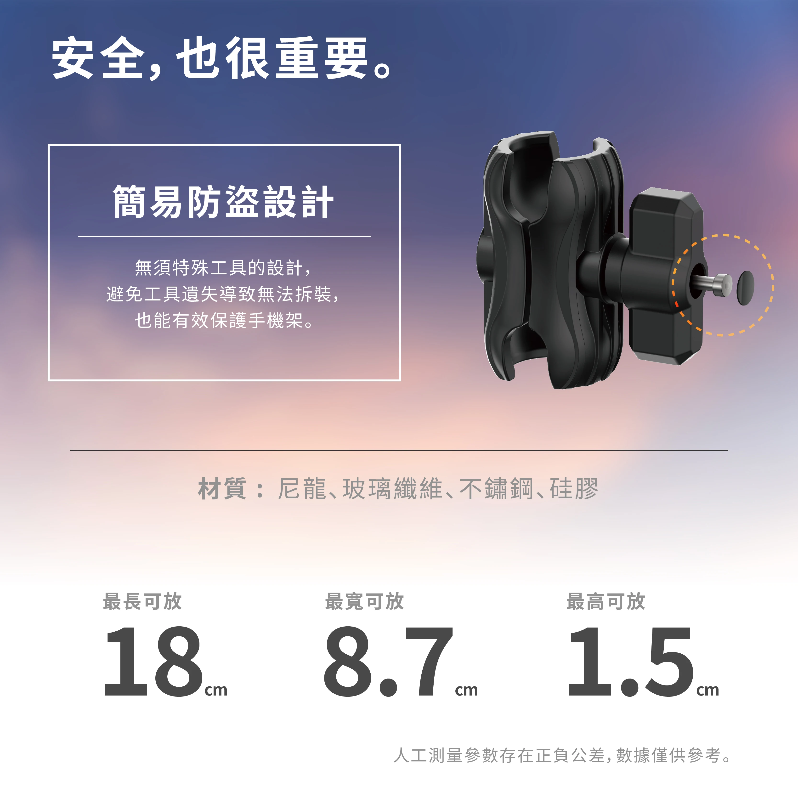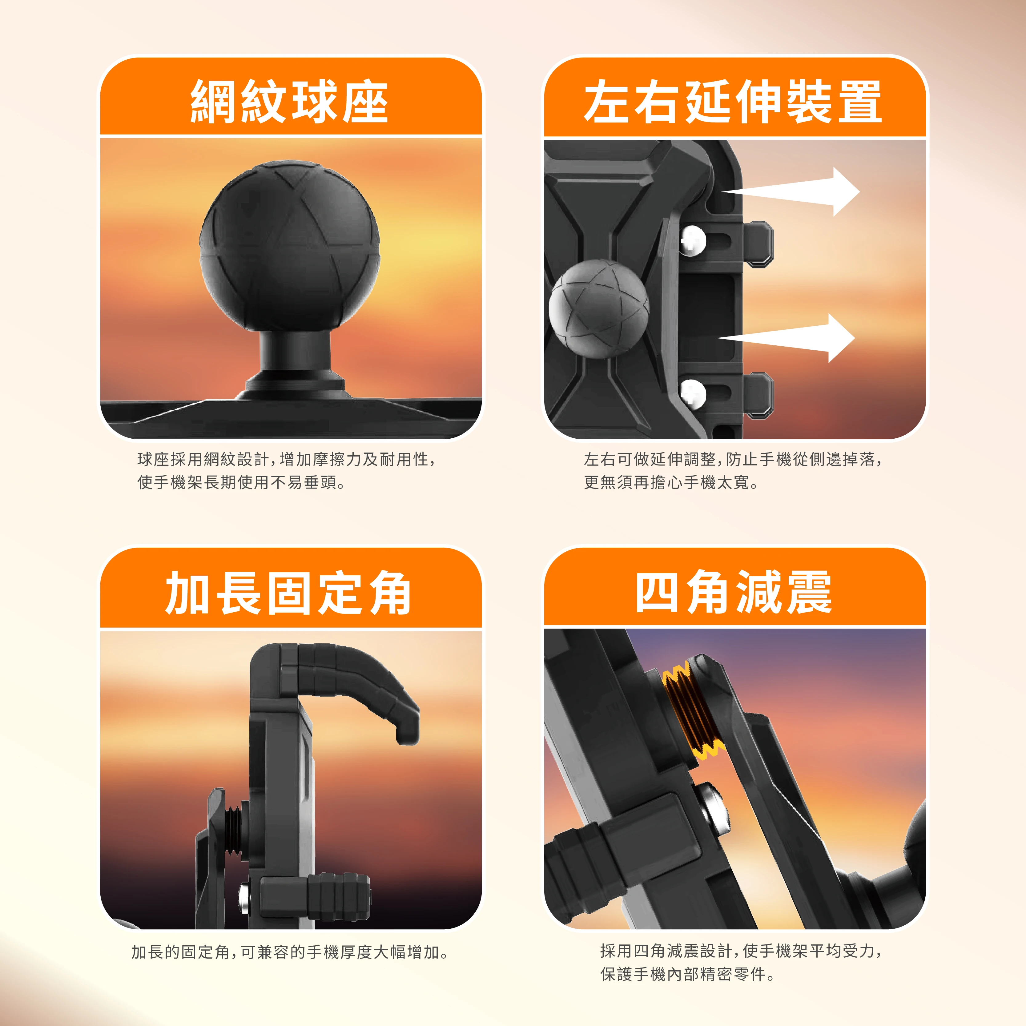 Feature: Four-legged shock-absorbing design, No-specialist anti-theft, Textured ball mount, Left-right extension rods, Extended fixing claws