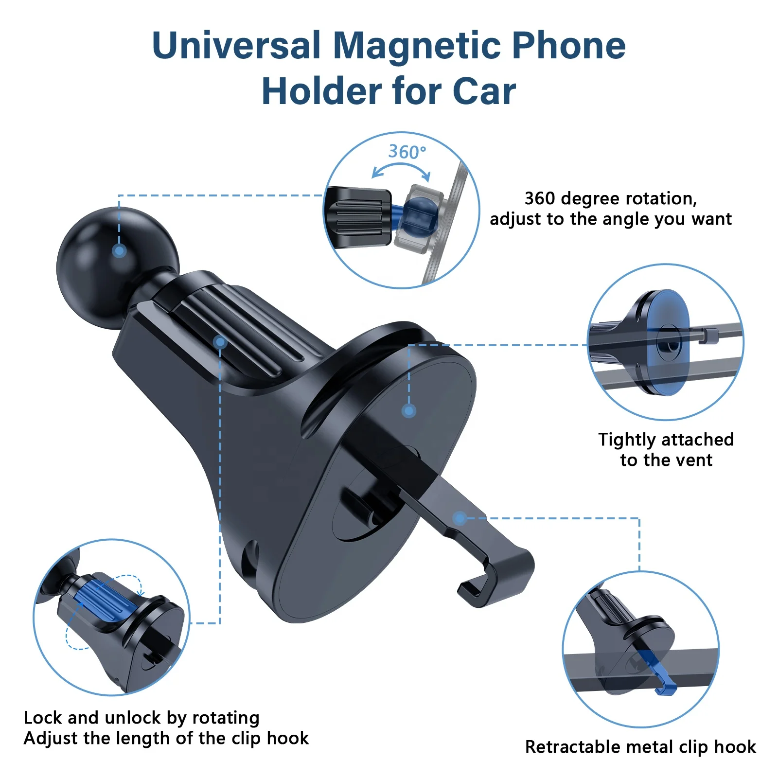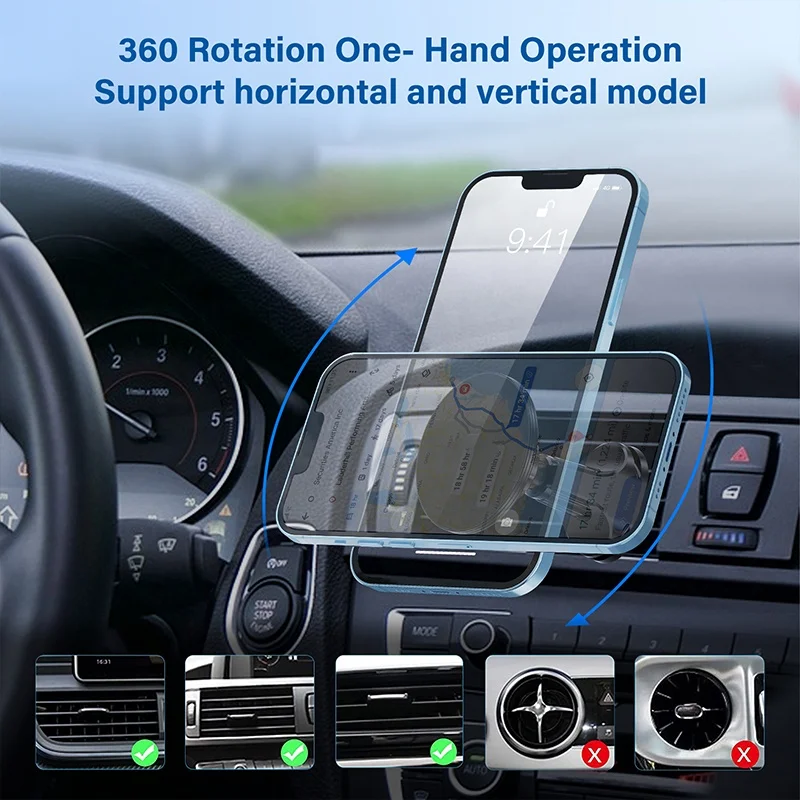Car Accessories Custom Logo Universal Magnetic Car Phone Holders Air Outlet Adjustable Phone Car Mount for iPhone 16 15 Pro Max