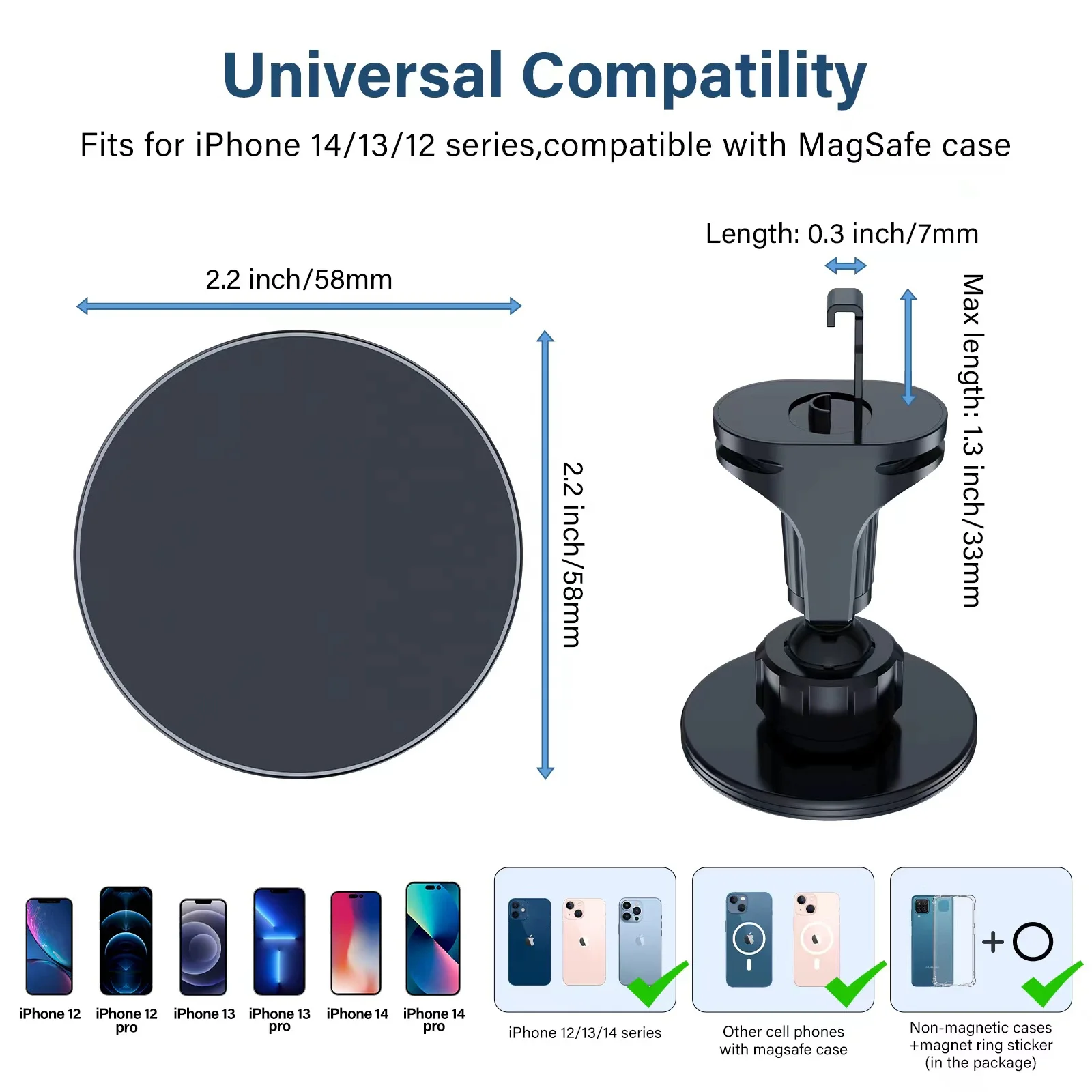 Feature: Adjustable, Portable, Flexible, Magnetic, 360 Degree Rotation, Magsafe- Car Mount