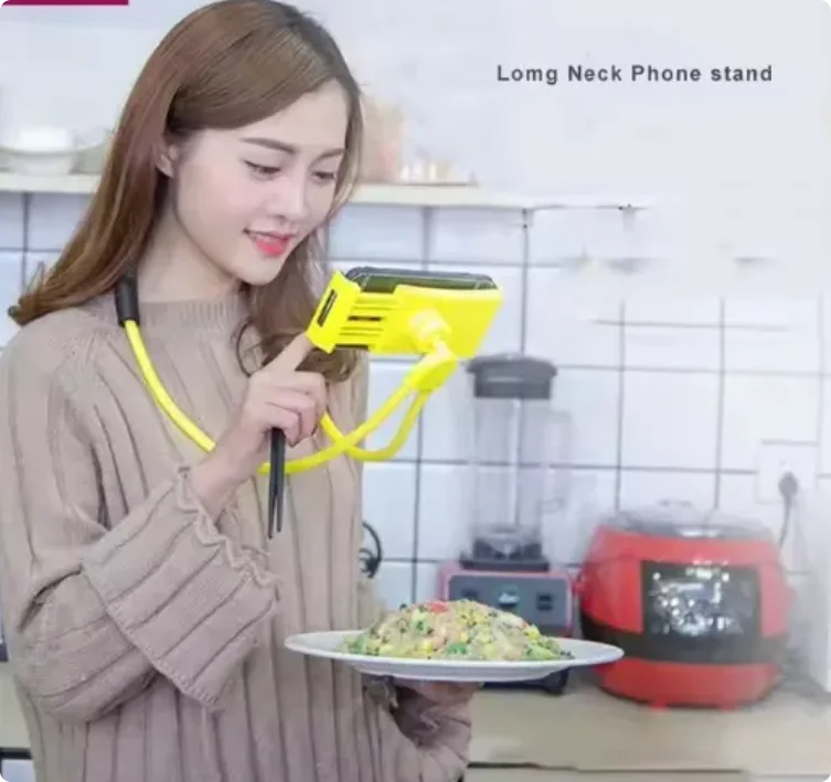 Feature: Flexible, 360 Rotation Neck Hanging Long Arm Flexible Phone Holder Necklace