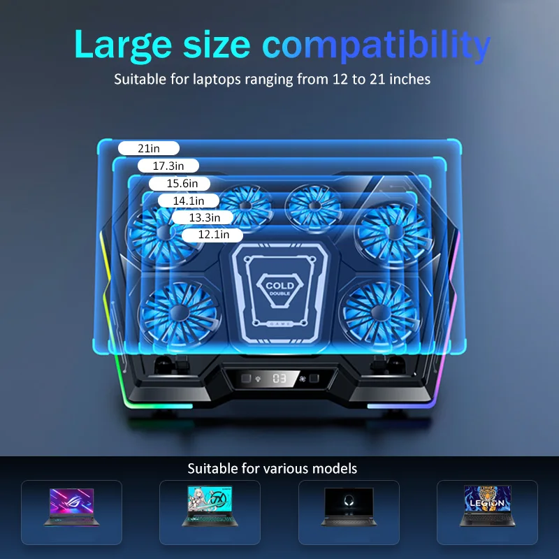D13 RGB Gaming Laptop Cooler Laptop Fan Cooling Stand with Semiconductor Cooling and 6 Fan Device for 11-17.3 Inch Laptops