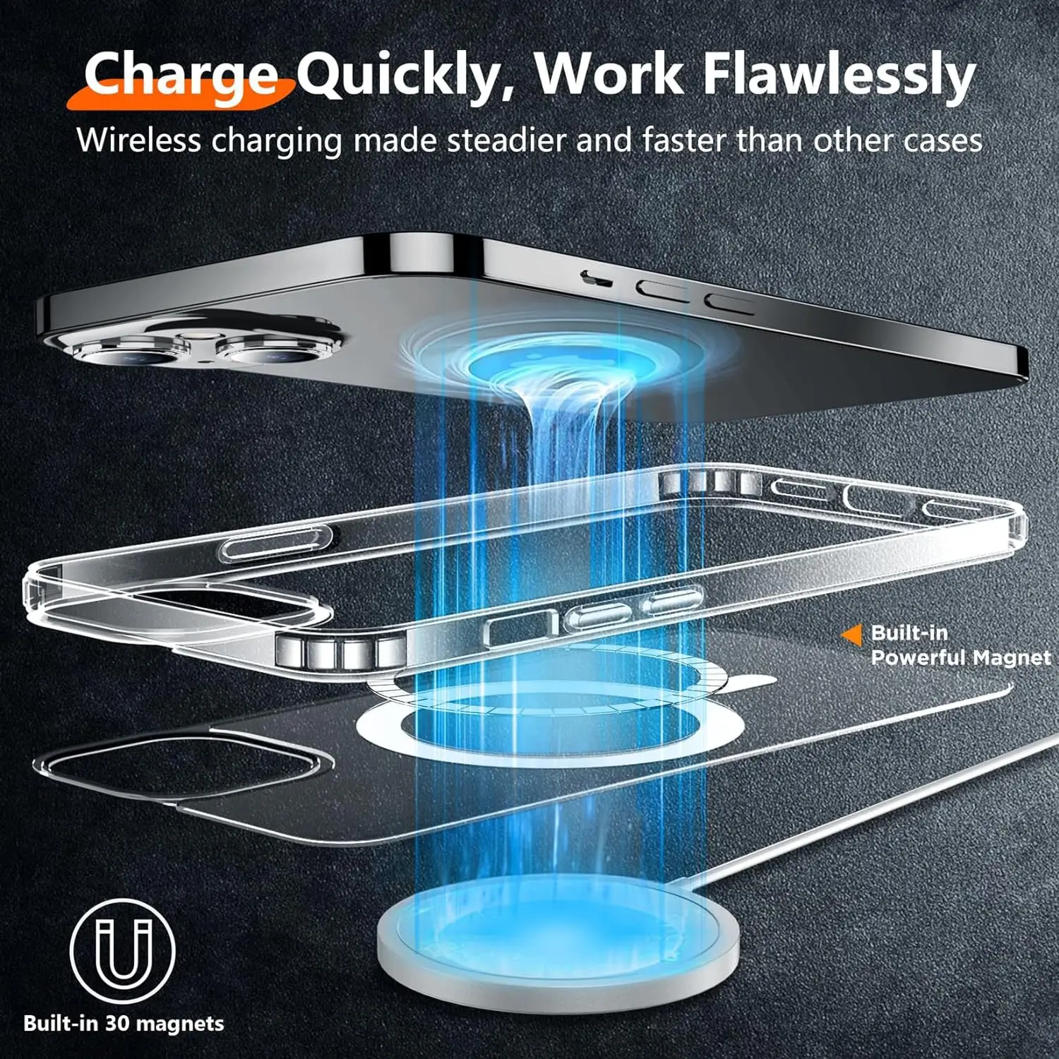 Be the first to review “For iPhone 17 16 15 Pro Max 3 in 1 Clear Magnetic Phone Case Camera Lens Full Cover Tempered Glass Screen Protective Phone Cover”