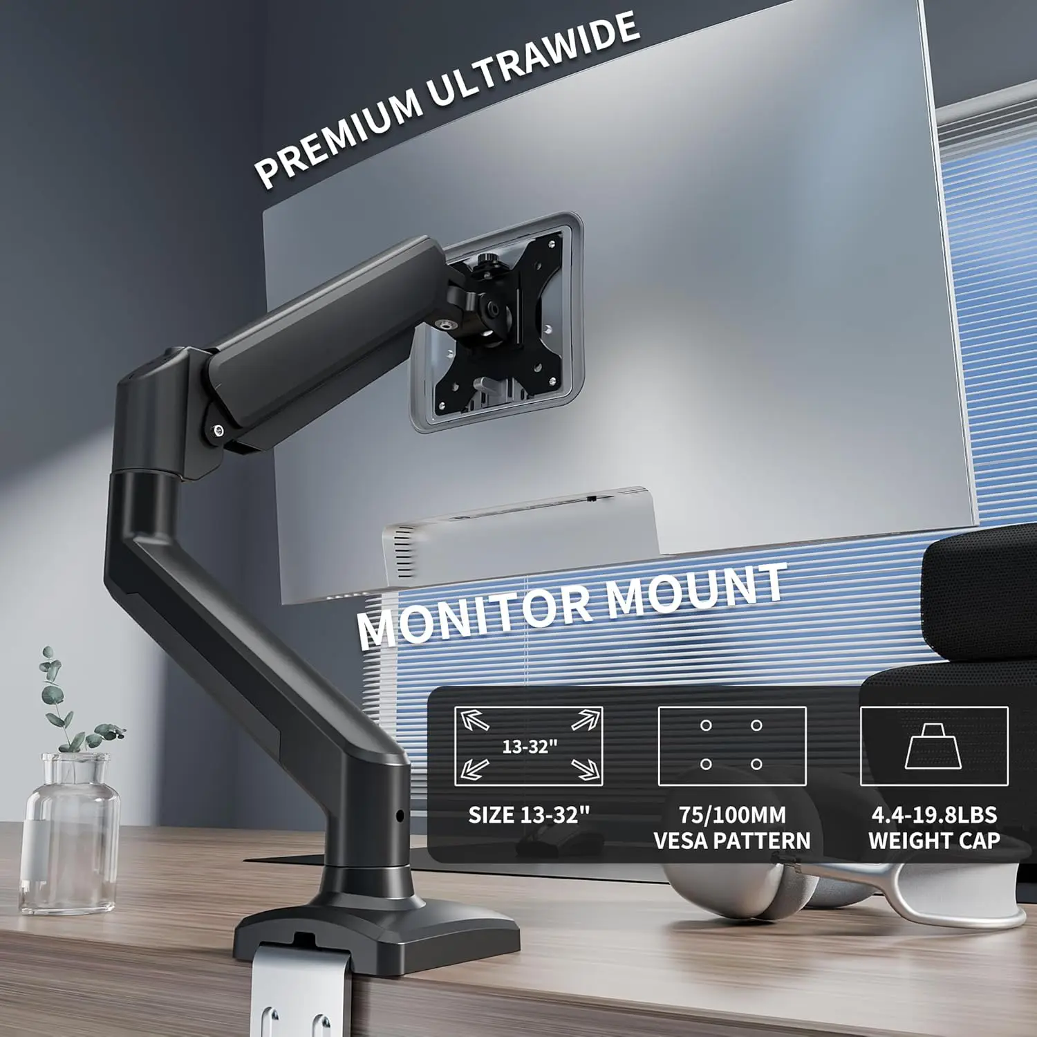 Gas Spring Single Monitor Desk Mount Arm for 17-32 Inch Screens