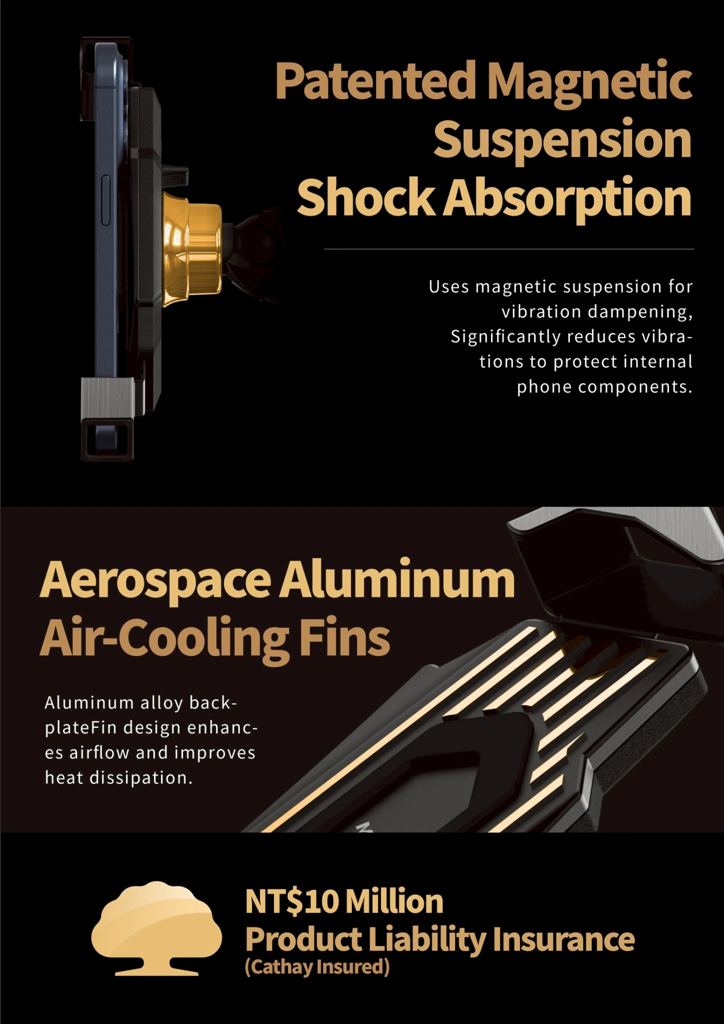 Feature: Magnetic suspension shock-absorbing design, One-second attachment and removal, Full-cover silicone, Safety locking button, Simple anti-theft design, Magnetic suspension shock-absorbing design