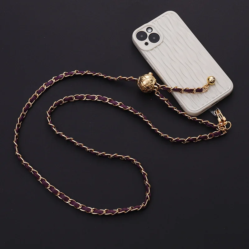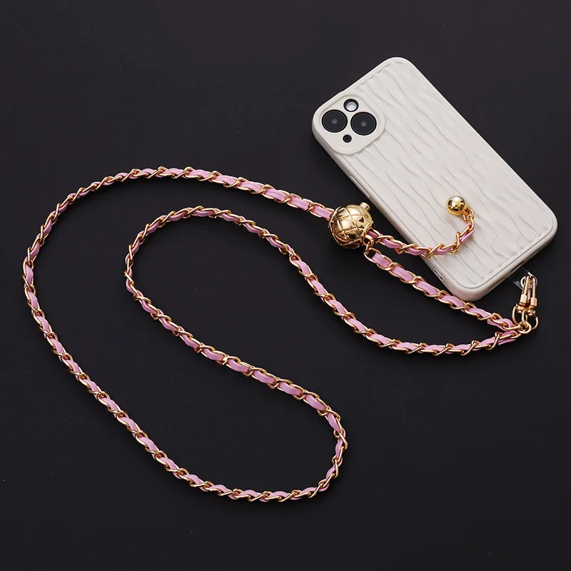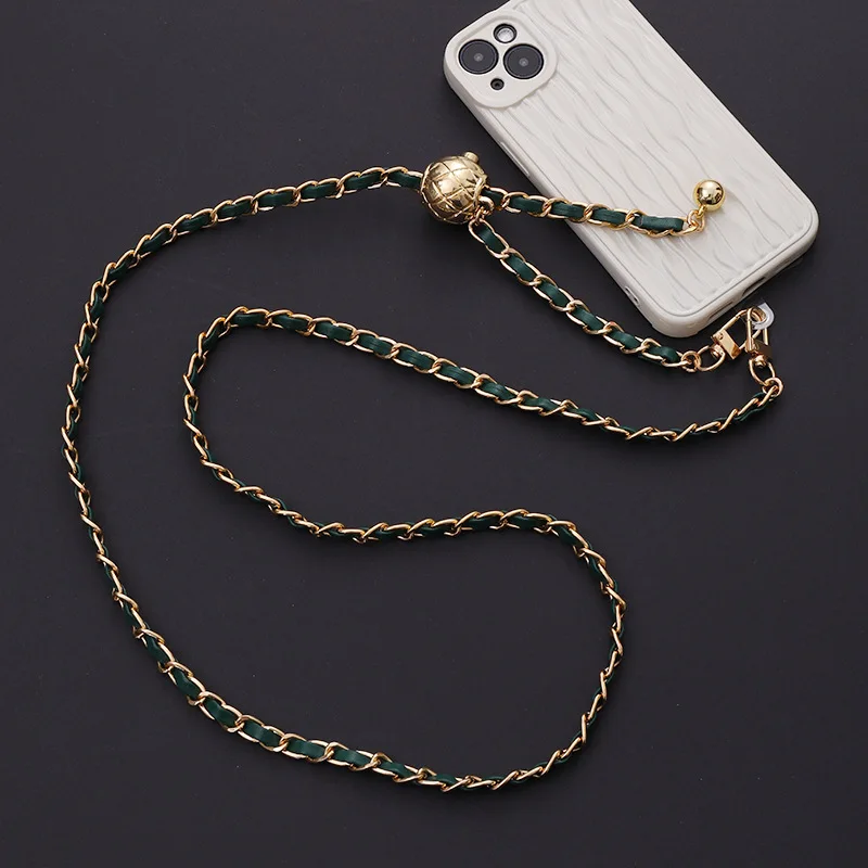 Luxury Designer Leather Adjustable Long Phone Straps Crossbody Phone Metal Chain Phone Accessories Jewelry Accessories for Girls
