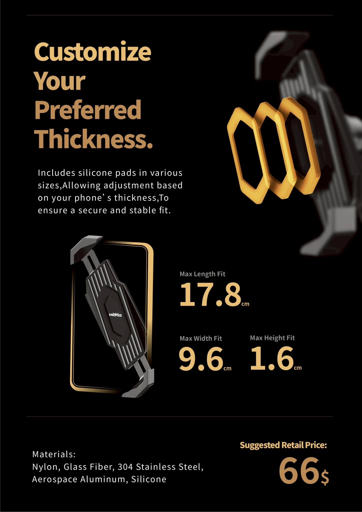 Feature: Magnetic suspension shock-absorbing design, One-second attachment and removal, Full-cover silicone, Safety locking button, Simple anti-theft design