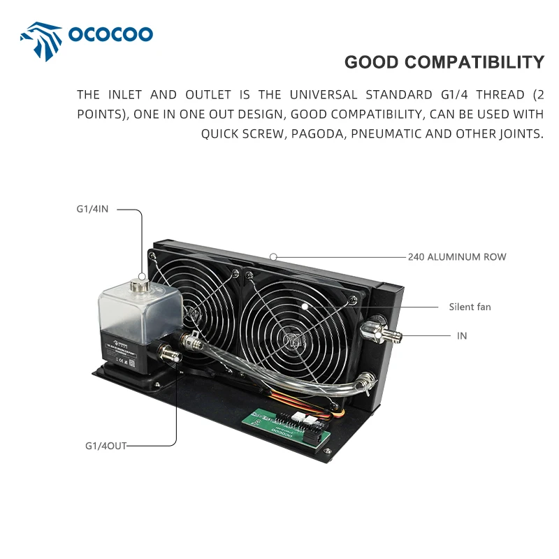 OCOCOO 240mm CPU Water Cooling Kit Radiator Fan Strong Liquid Gaming Computer Case Cooler Aluminum for PC Gaming Server
