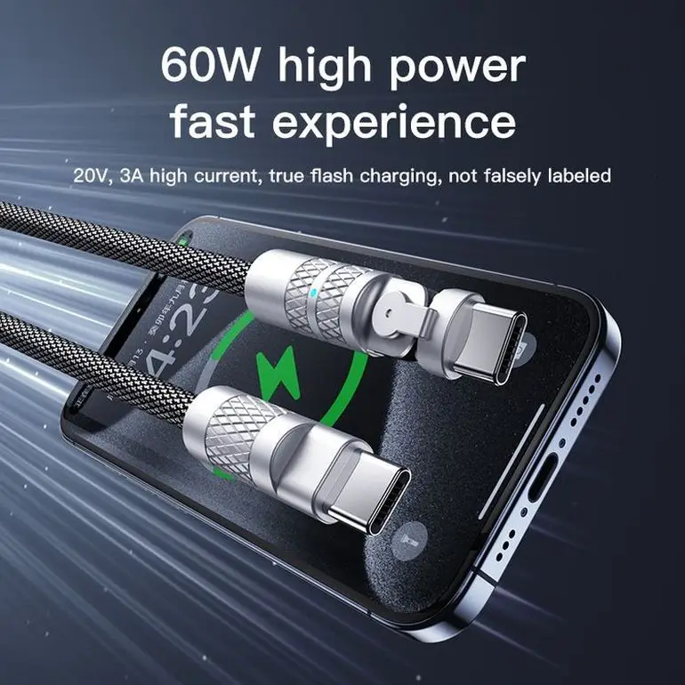 Premium Quality C to C Cable Fast Charging Data Cable Rotational Head Zinc Alloy Metal for Smartphones Laptops