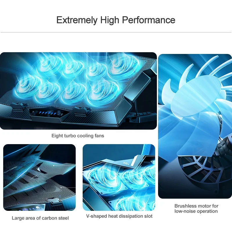SMONAMA Laptop Cooling Pad Adjustable Laptop Stand With Mobile Phone Stand Holder 8 Cooling Fans and USB Port
