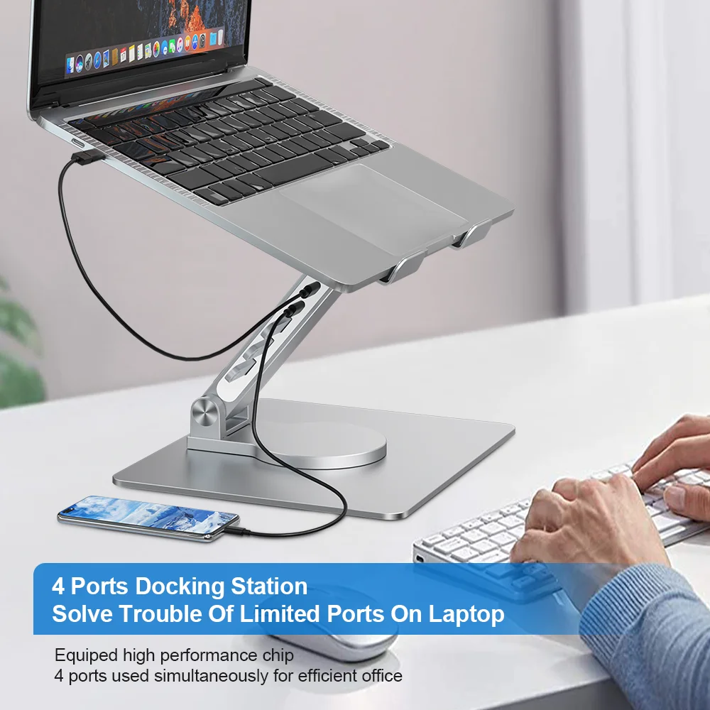 Type C USB 3.0 Height Angle Adjustable Laptop Stand Rotating 360 Degree Laptop Holder Desktop Stand with USB Hub