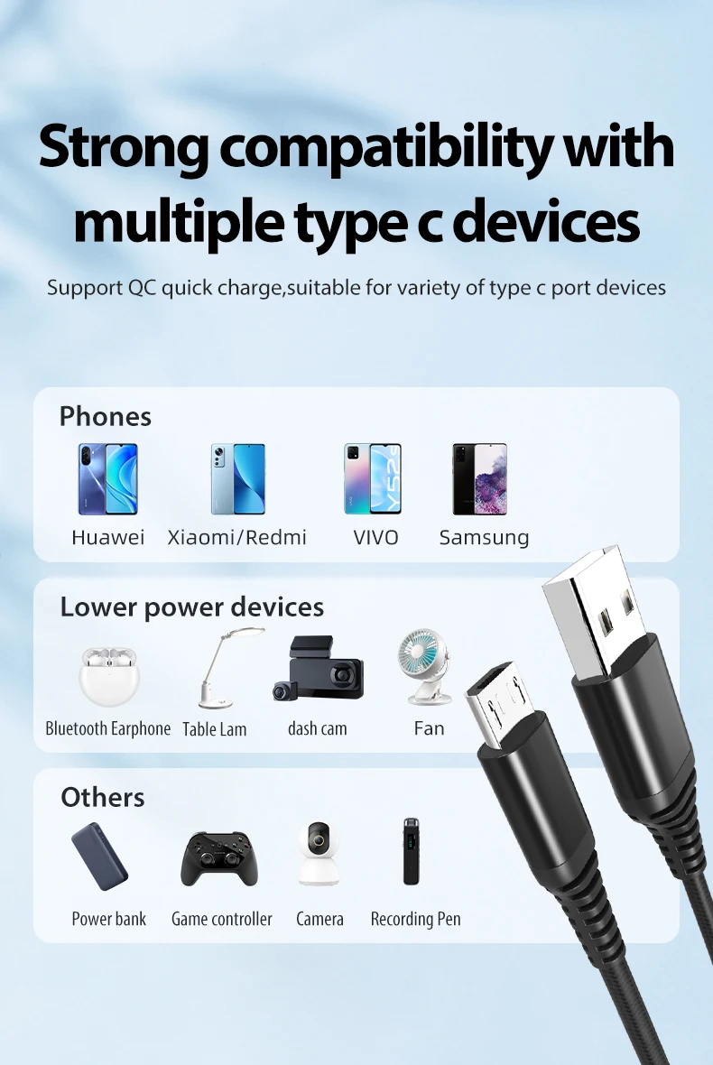 Type: USB Cable, micro USB charging cable, type-c usb cable, Metal Case Usb Cable, Fast charging cable